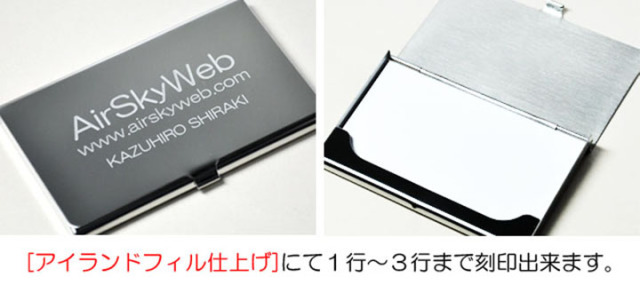 | 刻印について | ・フォント選択【1番・2番・3番・4番・5番・6番・7番・8番・9番・10番】 ・刻印文字 1行目【 】 例:AirSkyWeb 2行目【 】 例:Since 2010 3行目【 】 例:Kazuhiro Shiraki ・備考【 】 ※標準の入力欄は20文字以内となっておりますが、 20文字以上刻印希望の場合は、決済画面にある備考欄に刻印内容をご記入下さい。 |