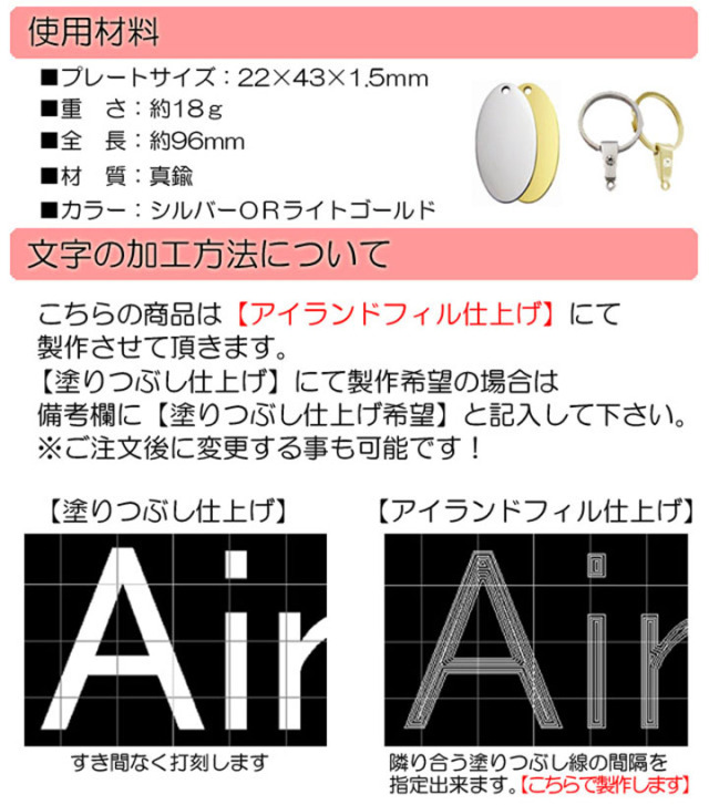アイランドフィル仕上げで高級感あふれるキーホルダーに仕上がります。