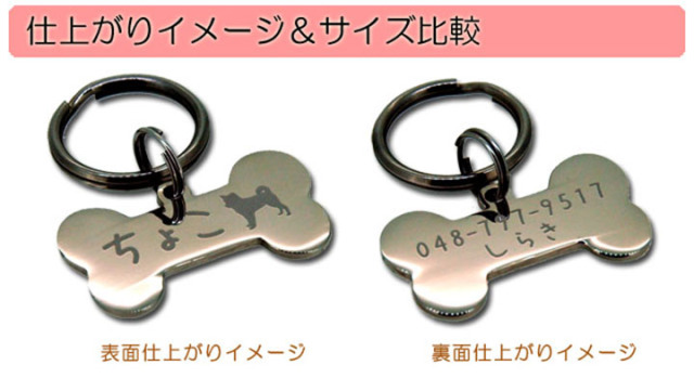 | 商品説明 | ■名称:迷子札 ■サイズ:約34×19×1.4mm ■重さ:約5g ■材質:ステンレス ■カラー:シルバー ■付属品:2種類 ■使用フォント:10種類 ■シルエット:66種類 |